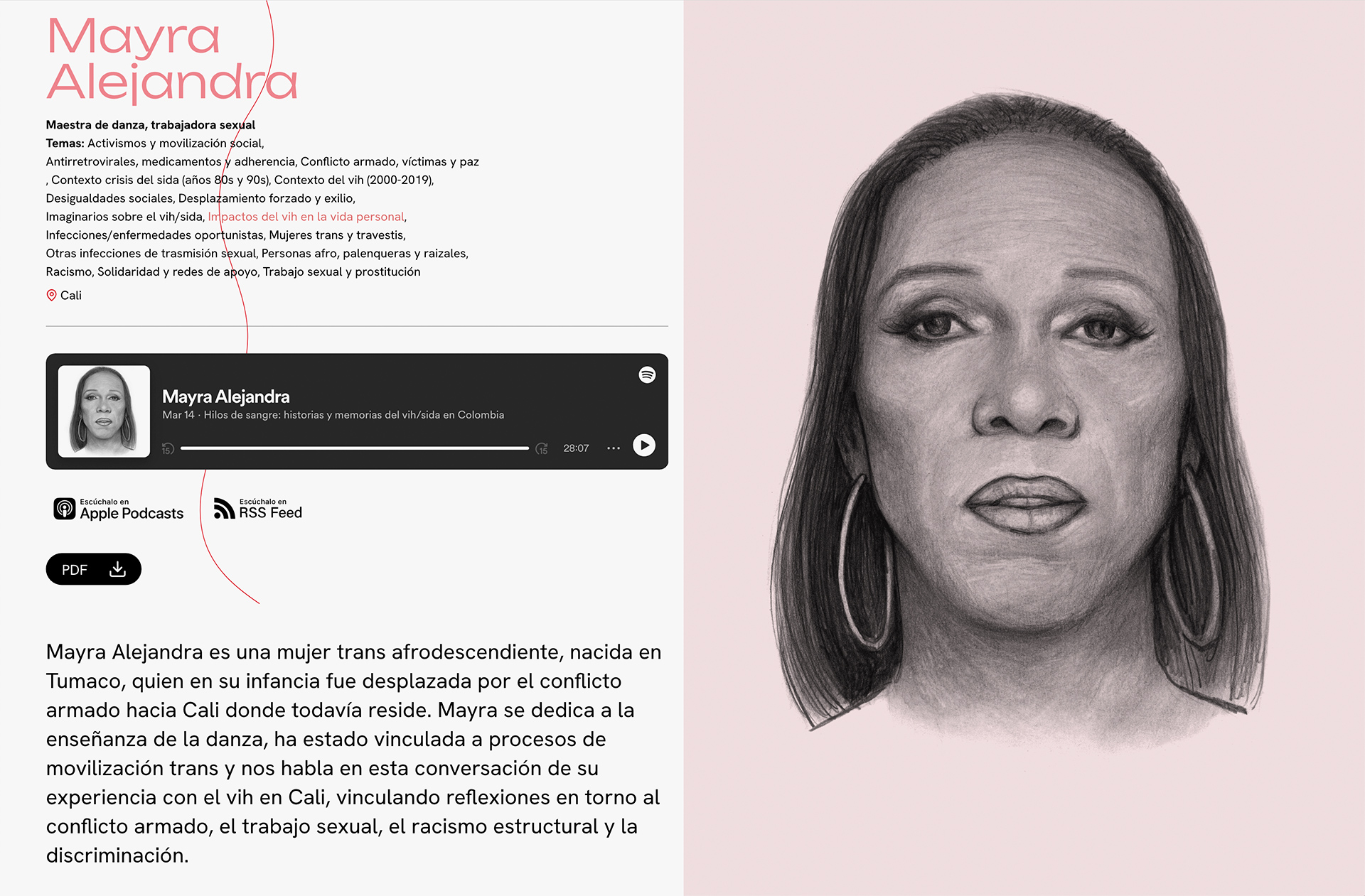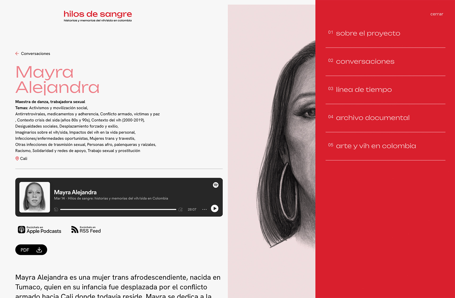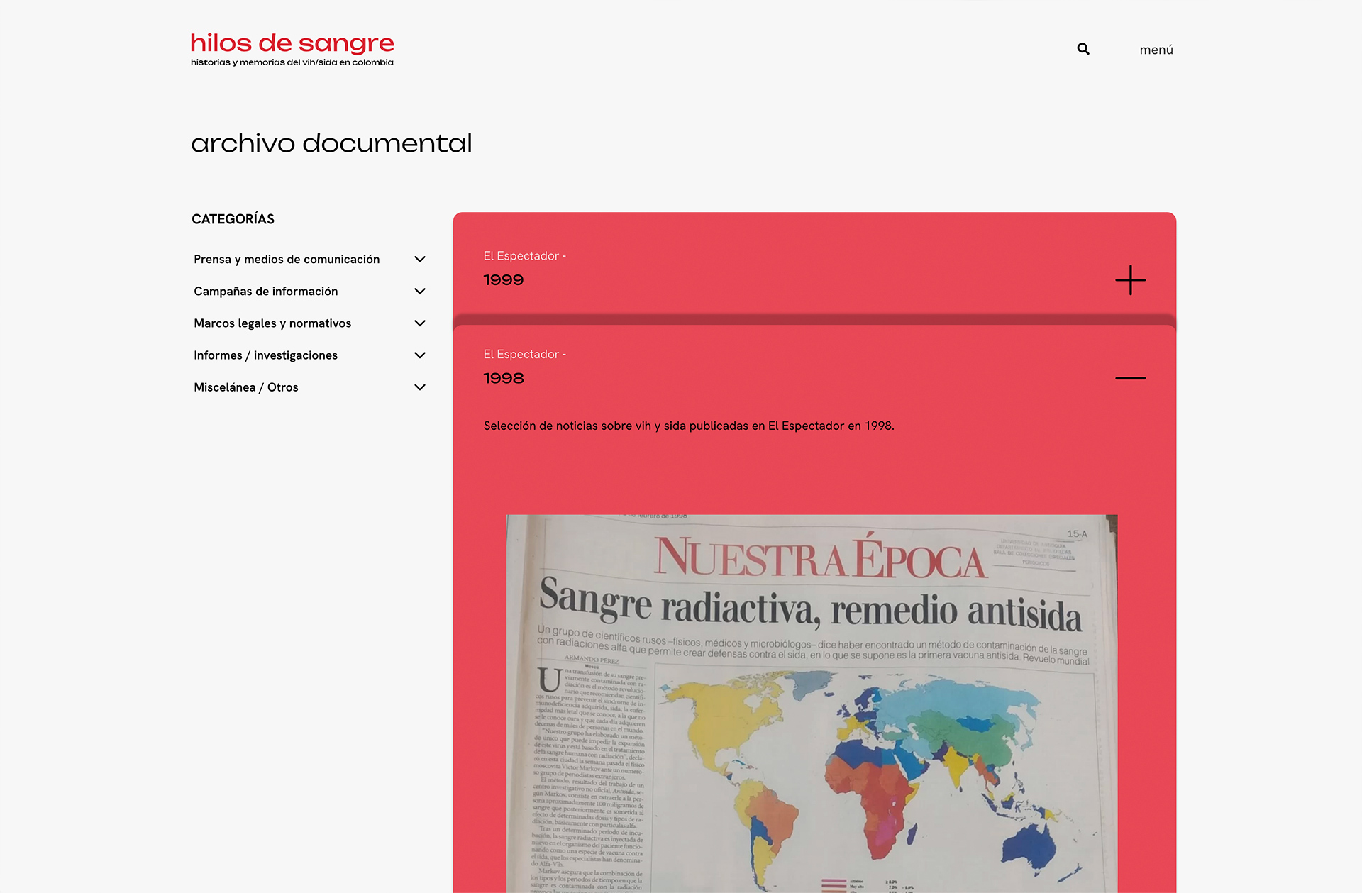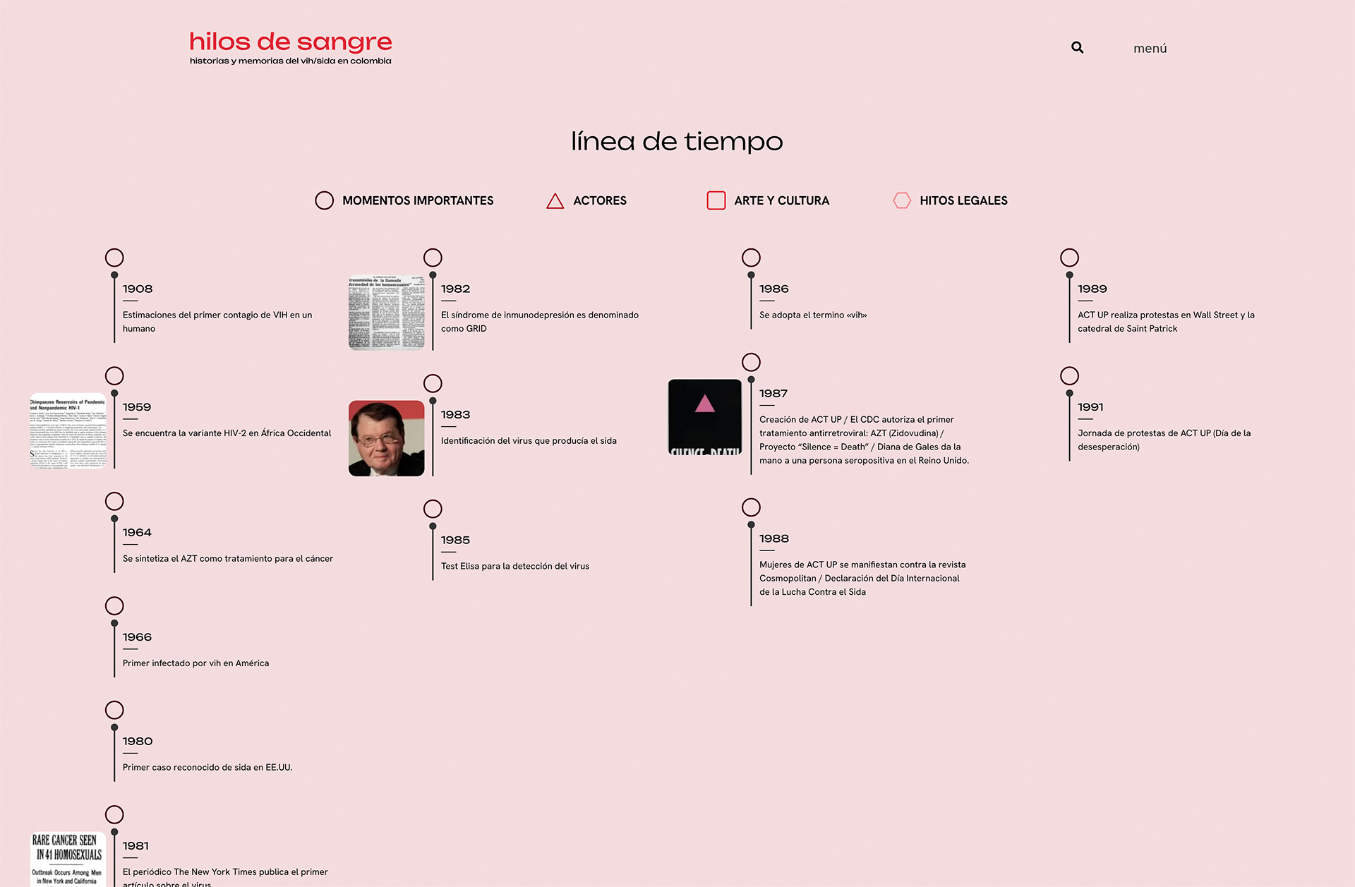 Diseño y desarrollo para la página Hilos de sangre. Historias y memorias del vih/sida en Colombia.